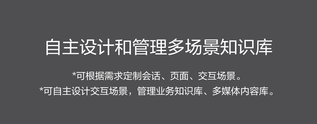 *可自主设计交互场景,管理业务知识库、多媒体内容库。